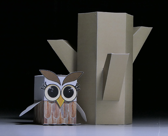 Un magnifique hibou coloré et son arbre en trois dimensions. Ils sont faits de carton de qualité supérieur avec des couleurs vives et amusantes. Une fois assemblé, le hibou mesure 3 pouces de hauteur, 2,25 pouces de largeur ainsi que 2,25 de profondeur.